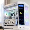 フロント3連・トップ3連の計6基のRGBファンが、ブラックの内部パーツと相まって華やかさと落ち着きを両立していますね。